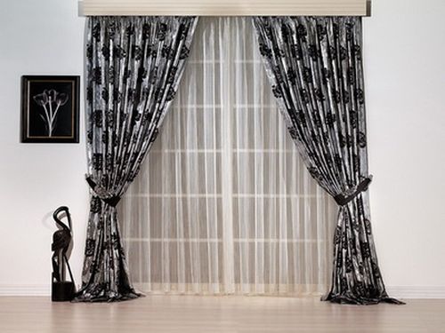 В современном интерьере все чаще можно встретить длинные черные шторы в пол, которые могут выделяться необычными формами, оборками или орнаментами. Для их украшения нередко используется драпировка и комбинация с другими занавесками, отличающимися составом ткани и фактурой.