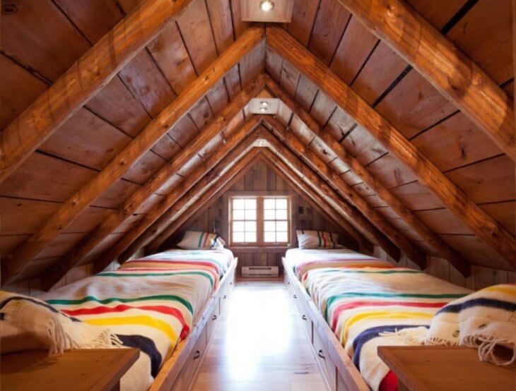 В этом вам очень помогут двухъярусные кровати и кровати-чердаки. Первый вариант всем известен, а второй — это спальное место наверху и шкаф — внизу. Вместо шкафа здесь может находиться комод, рабочее место или стоять диван. Такая кровать сама по себе уже экономит почти 2 квадратных метра пространства, а если установить две, например в детскую?