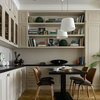 Да-да, не удивляйтесь, за неимением свободного пространства кухня вполне подойдет. А если кухня соединена с гостиной, то просто невозможно удержаться и не отхватить кусочек площади под организацию офиса. Конечно, громоздкий стол может и не поместиться, а вот откидная столешница для компактного ноутбука вполне подойдет. Ну а кресло на колесиках вполне можно откатить в сторону, когда оно вам не требуется.