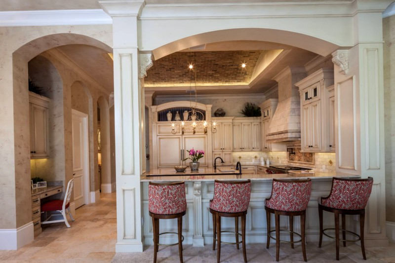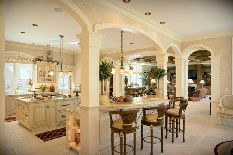 Просторные кухни с высокими потолками предоставляют практически неограниченные возможности в плане возведения арочных конструкций.