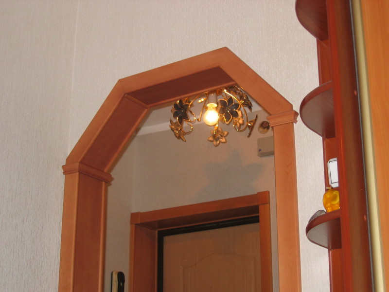 - Широкий входной проем оформляется как классическая, эллипсоидная, фигурная или трапециевидная арка.