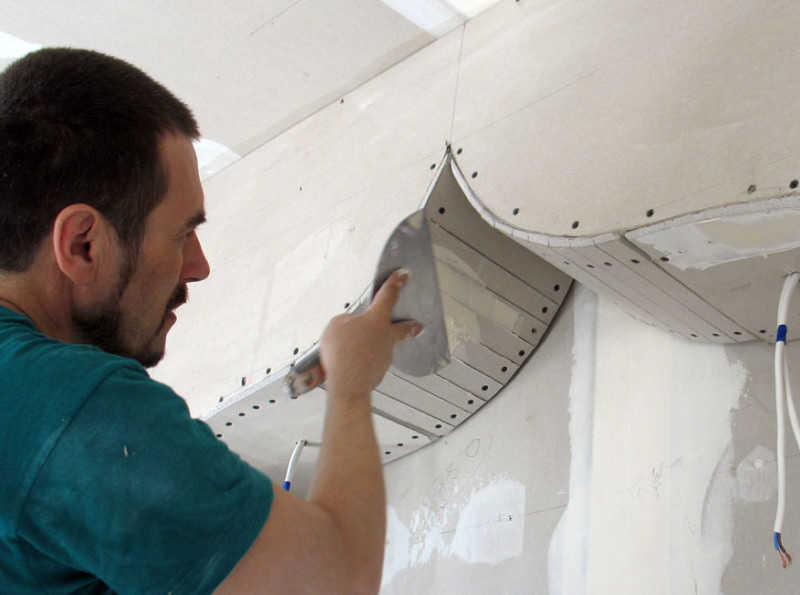 ГКЛ хорошо поддается сухому изгибу при радиусе сгибания от 100 см. Способность гнуться значительно упрощает и сокращает сроки монтажа. Более крутой изгиб требует смачивания верхнего слоя с одной стороны, что при такой толщине снижает прочность тонкого материала. Для повышения прочности конструкции используют покрытие в два слоя. Хорошие показатели гибкости делают этот материал незаменимым для сложных волнообразных сводов и арок.