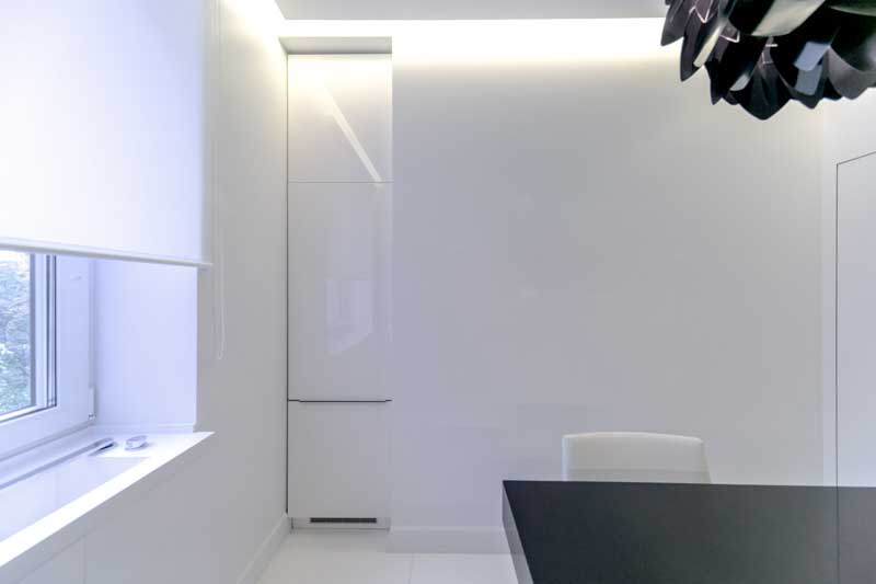 Для расположения устройства активно используют правый или левый угол. Если простенок около окна имеет необходимую ширину, то агрегат уместно разместить именно там. В данном случае получится эффективно задействовать мертвую угловую зону. Важно, чтобы холодильник не перекрывал оконный проем.