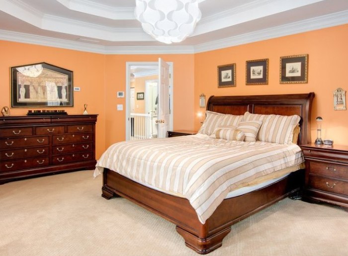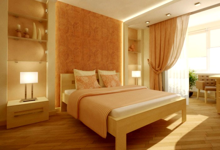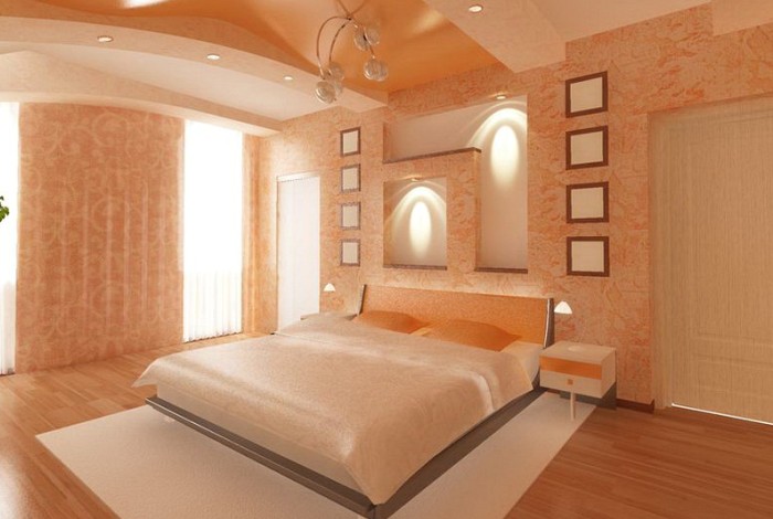 Использование персиковых обоев в спальне