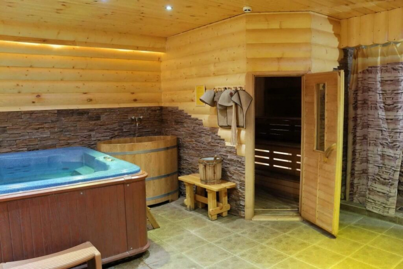 - Большие помывочные помещения могут быть оборудованы ваннами с разными видами массажа, а также бани с бассейнами различного объема.