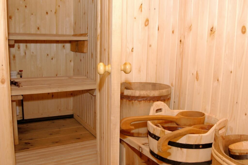- Немного места займет размещения в мойке обливной конструкции – ведра, которое позволяет охладиться после посещения парилки;
