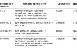 Виды гипсокартона и их маркировка по цветам.