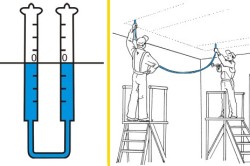Схема разметки потолка при помощи водяного уровня.