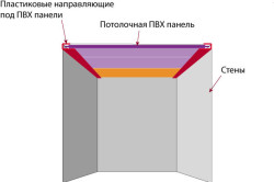 Схема установки панелей ПВХ на потолок.