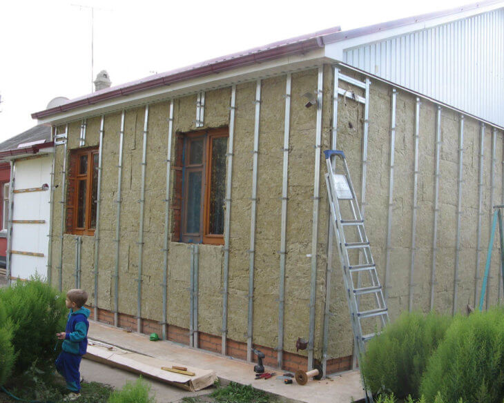 Металлическая обрешетка очень удобна для настройки, поскольку позволяет менять расстояние от направляющей до стены в данном месте. Необходимо следить, чтобы оно не получилось меньше толщины утеплителя, что сделает невозможной правильную установку контробрешетки.