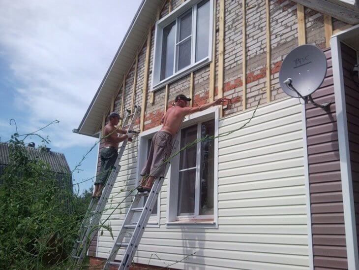 К рабочим операциям можно приступать, когда поверхность стены будет полностью освобождена от выступающих конструкционных элементов. Это могут быть водостоки, наличники и другие детали, которые нужно будет заново фиксировать на поверхность, облицованную сайдингом.