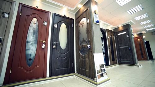 Полотно выпускается в глухом и остеклённом вариантах. Кроме того, в отделке используются витражи.