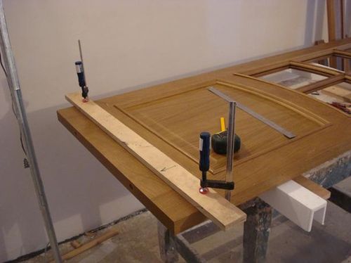 - Это метод не требует снятия дверного полотна с петель, можно сделать и вертикальном положении.