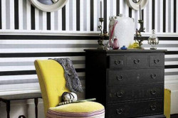 Вариант №1 Полоски клеятся через одну, например, одно полотно будет непосредственно с вертикальными полосами, а второе – нейтральное, играет фоном для первого.