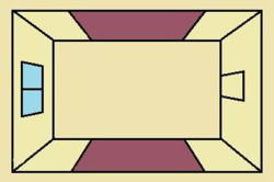 Схема стандартного комбинирования обоев прямоугольной в комнате.