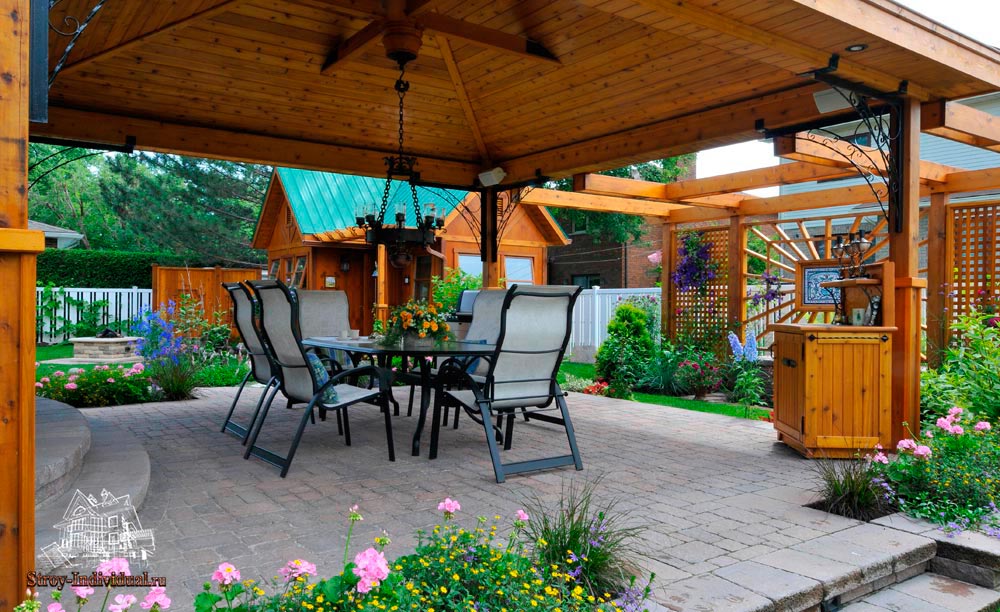 В каждом жилье необходима зона отдыха. Особенно на территории загородного дома можно обустроить комфортное место на свежем воздухе, где вы будете собираться с друзьями и семьей, кушать, играть и просто проводить время на свежем воздухе.