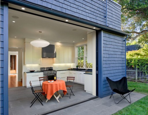 1) Осмотрите внешнее пространство, которое вы хотите отвести под летнюю кухню. Подумайте, как сохранить все это великолепие летнего солнца и свежего воздуха. Может быть, для кухни будет достаточно плиты с мойкой на колесиках, стола и пары стульев в стиле патио? Добавит легкости использование цветной краски при отделке стен.