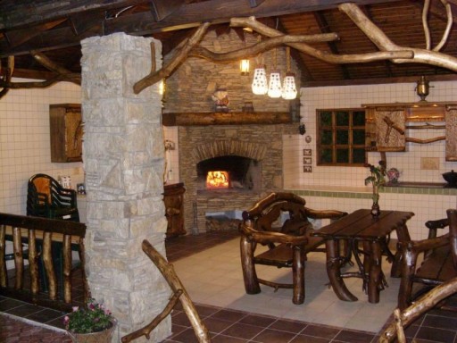 Либо техника и мебель находятся под открытым небом, либо под художественно оформленным в том или ином стиле навесом.