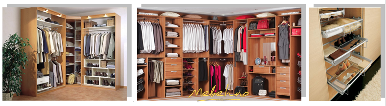 Как в любом шкафу купе в угловом есть некоторый набор полок, ящиков, корзин и отделов для вешалок. Особенность углового шкафа в его форме: есть некоторое количество неудобных мест, которые, тем не менее, надо использовать. В каких-то моделях таких неудобных мест больше (диагональных), в каких-то меньше (Г-образных). В грамотном заполнении вот этих неудобных мест и состоит основная задача при разработке внутреннего наполнения углового шкафа.