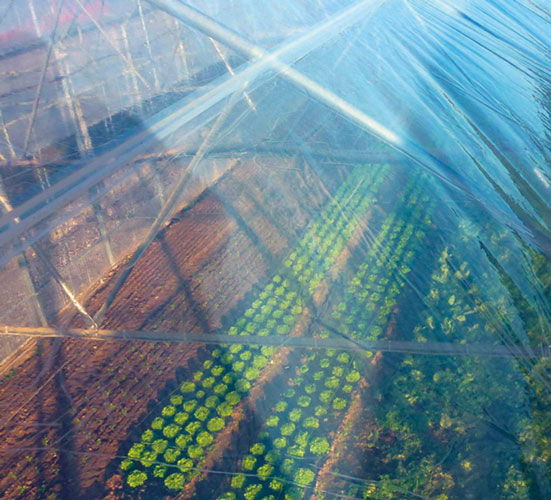 Укрывной материал в виде ПВХ-плёнки обладает стойкостью к растрескиванию, прозрачностью и отличной светопропускающей способностью, близкой к 90%.
