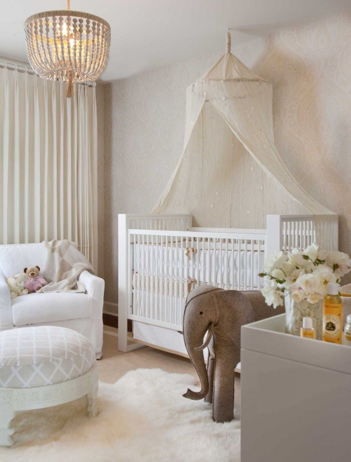 Цвет балдахина также стоит подбирать под оттеночную гамму комнаты или же взять нейтральную белую или бежевую ткань, которая подойдет как мальчикам, так и девочкам.