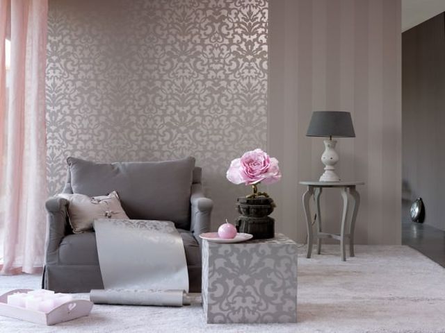 Евро обои – противоположность классическим, они украшены богатыми орнаментами, чаще серебряных, золотых оттенков. Не в каждой комнате они будут смотреться гармонично. Неудачным будет применение евро обоев для спальни в стиле кантри, прованской кухне. Основное их использование – для гостиных, залов.