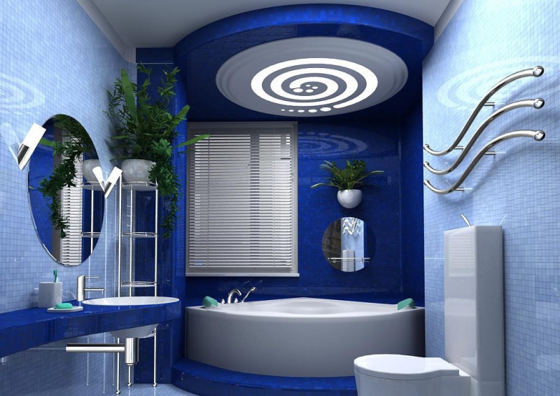 Следует помнить о том, что более светлые тона голубого способствуют расслаблению и могут действовать усыпляющие на организм человека. Поэтому, если вы хотите создать ободряющую и наполняющую энергией обстановку в своей ванной комнате , то лучше выбрать тона яркие, насыщенные и более темные.