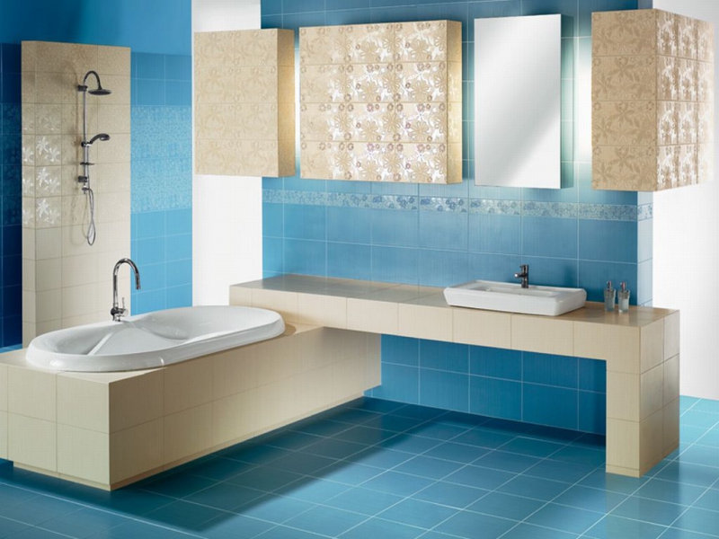 Светлые небесные тона рекомендуется делать в комнате доминирующими. Если базовый оттенок будет слишком насыщенным, при первом взгляде он даст ощущение радости и праздника, но потом быстро вызовет чувство пресыщения, раздражения. Размер и расположение плитки тоже играют роль: мелкий темный кафель дает менее угнетающий эффект, чем крупный, так как последний смотрится монолитным.