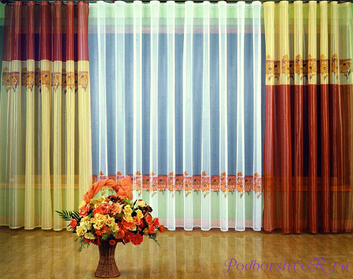 Размер (Ш x В): 50×250 см 2 шт., тюль 100×250 см 1 шт.