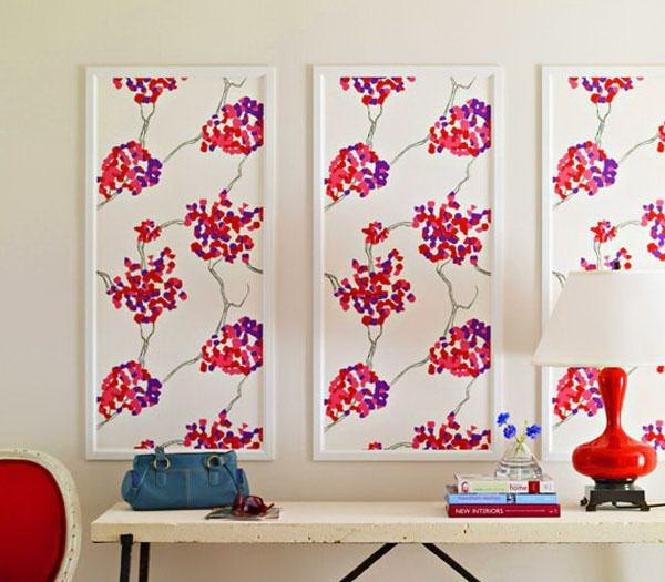 Метод вставок предельно прост, но от этого он не менее популярен. Заключается метод в том, что для фона используются одноцветные обои выбранного оттенка, а вставки вырезаются в произвольной форме из обоев с рисунком или без него. Это могут быть овалы, квадраты, прямоугольники или сложные формы. По краям такие вставки лучше всего оформлять пластиковыми плинтусами, после монтажа они окрашиваются в выбранный цвет.