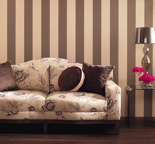 При использовании обоев с вертикальными полосками Вы создаете визуальный эффект увеличения высоты потолка. Это следует учитывать, если потолки в помещении изначально высокие.