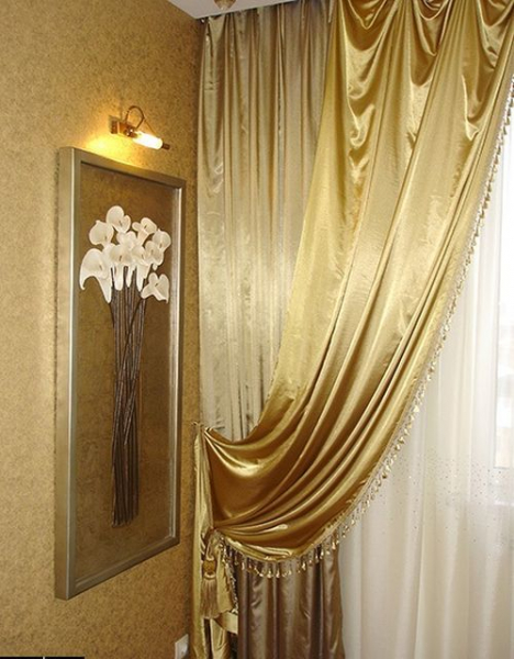 Фото — 24 Атласные шторы золотистых оттенков
