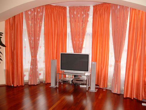 Фото — 44 Атласные шторы для нестандартных окон