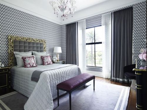 Фото — 27 Атласные серые шторы с узором в интерьере