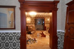 Монтаж готового комплекта для арки легко выполнить и самостоятельно. Важно знать, что начинать работу следует с оформления свода и далее продвигаться вниз. Для приклеивания деталей применяется столярный клей или ПВА. Монтаж боковых частей и наличников выполняется после их подготовки: их сначала следует точно подогнать по размерам, подпилив или допилив при необходимости.