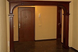 На этом изготовление арки из дерева можно считать законченным. Кроме самой арки, изготавливают дополнительные декоративные элементы: наличники, имитацию замкового камня, «каблуки» и прочие детали. Деревянные поверхности тонируются и покрываются лаком или окрашиваются.