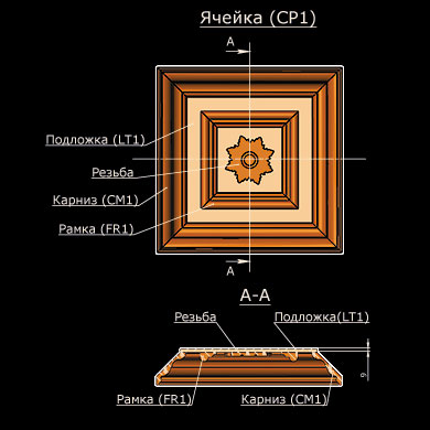 Устройство ячейки кессонного потолка.