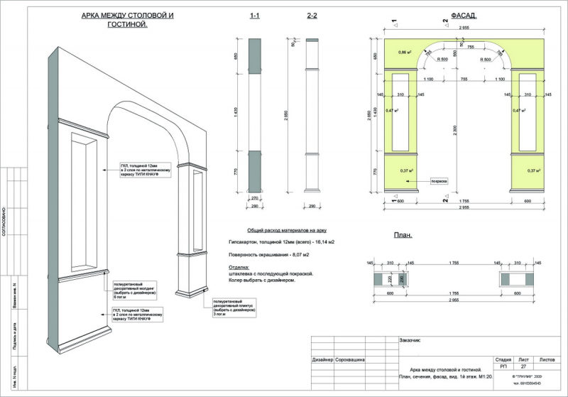 В строительстве любой серьезный процесс начинается с изготовления чертежа. Поэтому перед началом работы необходимо составить схему стены, на которой будет изображен проем желаемой формы, с указанием его размеров, радиусов кривизны при необходимости таковой и привязки контрольных точек периметра проема к потолочному перекрытию, углам или другим базовым конструкциям.