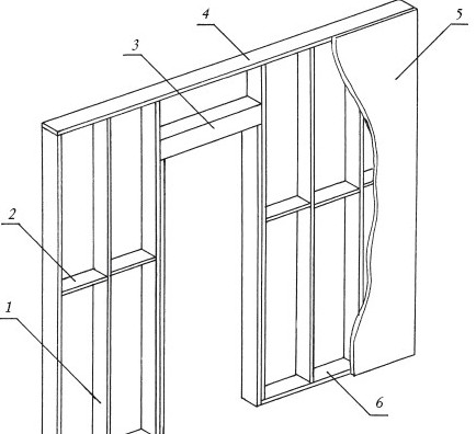 Направляющие профили крепятся к потолку и полу помещения, обозначая контур стены. Стоечные профили устанавливаются вертикально в направляющие и служат для обеспечения жесткости конструкции и основой для крепежа обшивки. Два таких профиля формируют дверной проем в выбранном месте перегородки.