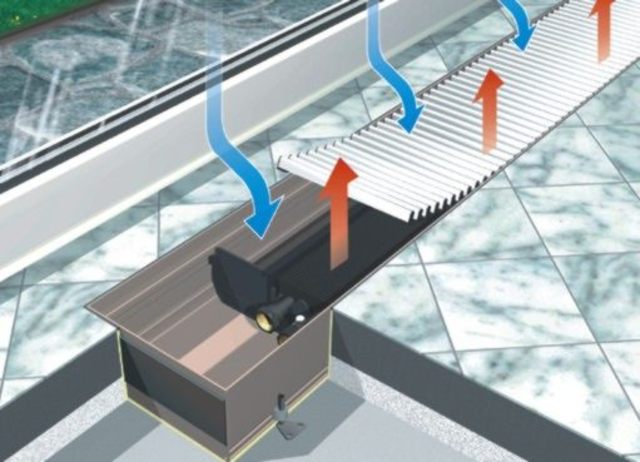 Конвекторы отопления встраиваемые в пол. В наше время многие люди живущие в частных домах изменили свой выбор с радиаторов отопления (батарей) в пользу конвекторов встраиваемых в пол. Такой способ отопления появился сравнительно недавно, его не используют в квартирах. На самом деле такой конвектор такой же как радиатор отопления, но с измененным дизайном, и его встраивают в полы. Он не испортит ни одного интерьера, часто используется при панорамном остеклении (когда стекло длинной во всю стену).
