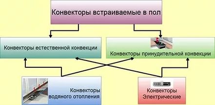 Напольные конвекторы могут классифицироваться по принципу работы: