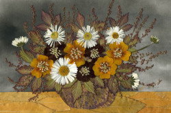 Ошибана — это техника, напоминающая аппликацию, инкрустацию и мозаику одновременно, но только в качестве материала в ней используются засушенные лепестки цветов, листья и травы. Главное — это правильно засушить растения, чтобы они не потеряли свой цвет. Для этой цели используют специальный пресс, который легко изготовить самостоятельно. Возьмите доску или фанеру, положите сверху листы упаковочного гофрокартона, между ними расположите пористую бумагу, завершите конструкцию доской, на которую установите какой-нибудь груз. Усовершенствовать пресс можно таким образом: скрепите две доски регулируемыми винтами, между ними расположите листы гофрокартона, переложенные пористой бумагой. При такой конструкции гораздо легче создать нужное давление.