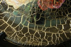 После нанесения второго компонента необходимо выждать не менее 12 часов (точное время указано в прилагаемой инструкции), после чего вы увидите красивую паутинку из трещин, которые нужно будет затереть. В некоторых случаях второй шаг смывают водой, поэтому перед употреблением ознакомьтесь с инструкцией на упаковке. Для затирки используют масляную краску, сухие пигменты, золотой порошок, пастель, все лишнее аккуратно стирают тряпочкой, результат закрепляют лаком. Если вы затирали трещины сухими компонентами, например, пигментом, то кракелюр закрепляют аэрозольным лаком, иначе все размажется.