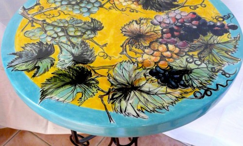 Для декора стола своими руками с помощью мозаики или плитки используют как готовый материал, так и все, что найдется в наличии дома. Это могут быть: битые тарелки, кафель, керамику, стекло, ракушки, камни. Перед тем как приклеивать мозаику, стоит разложить ее по поверхности, посмотреть разные варианты узора и зафиксировать тот, который понравился больше всех. Клей наносится на каждый кусочек отдельно, такая кропотливая работа может занять много времени. Особенно хорошо этот способ подходит для декора журнального столика своими руками или украшения садовой мебели.