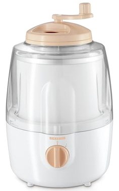 - Ручные механические. Перемешивание продуктов в них выполняется за счет вращения ручки вручную. Сейчас такая техника встречается очень редко, так как процесс приготовления мороженного с ее помощью занимает много времени, и требуются физические усилия.