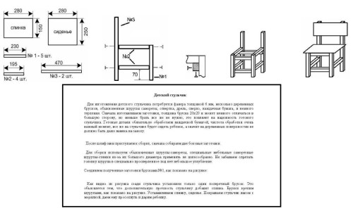 Предлагаем чертежи и порядок изготовления детского стула. Его размеры: