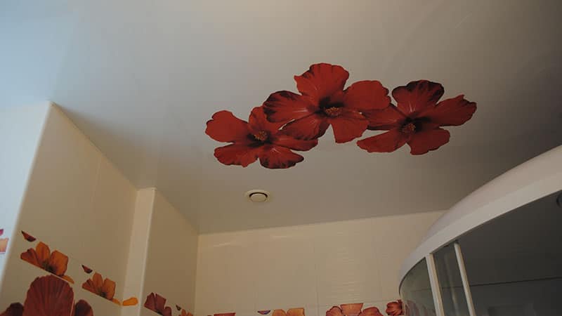 - Мой муж давно хотел преобразить потолок. Его площадь равна 4 квадрата. Долго выбирали фактуру. Остановились на варианте, сделанном в Германии. Полотно имеет фотопечать, прикольно делит ванную комнату на зоны. Единственное, на что мы решили потратиться дополнительно и не пожалели денег – качественная вентиляция. Зато после душа комната намного быстрее подсыхает, влажности не остается