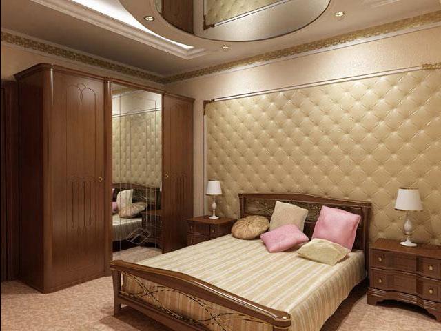 Хорошо получится, если стены покрыть обоями для окраски. Нанесите на них бежевый либо светло-коричневый тон. Темный тон одной цветовой гаммы отлично сочетается с более светлым оттенком, а яркость позолоты добавит изысканности в интерьере. Мысленно осмотрите комнату. Даже маленькая кажется царской опочивальней.