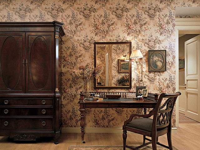 Светлые обои и темная мебель – комбинация, создающая уют. Растительная тематика на обоях английского стиля