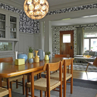 Свежая идея для дизайна: столовая в викторианском стиле с разноцветными стенами и паркетным полом среднего тона – отличное фото интерьера